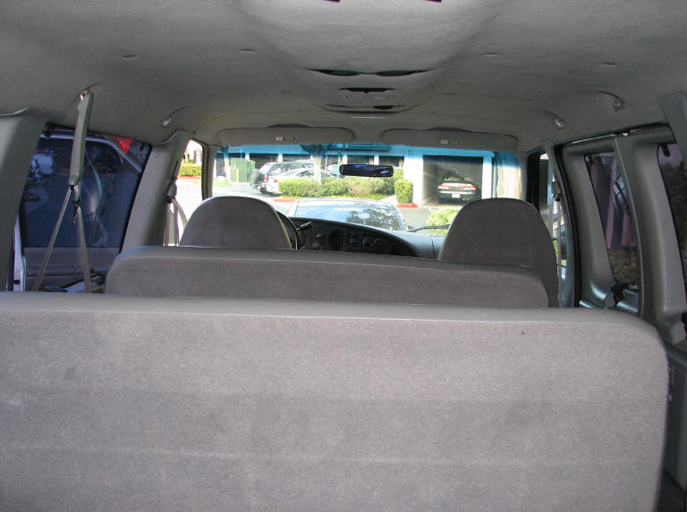 One of the key components to any roadtrip is a vehicle. Since our roadtrip is going to consist of some quality time spent in cold, wet and snowy areas, we needed something we could not only drive but also sleep in. The initial idea was to get a big truck and a trailer. We scrapped that after considering trailer speed limits, gas mileage, narrow roads and the fact that towing a trailer in the snow would be downright scary. After a little more thought, we came up with the biggest van we could find, which turned out to be a Ford 15 passenger van. It's a 1997 with 113,000 miles when purchased. 5.4L V8, Limited slip differential in the rear, and snow tires when the white stuff starts accumulating. The day after we bought it it looked like: